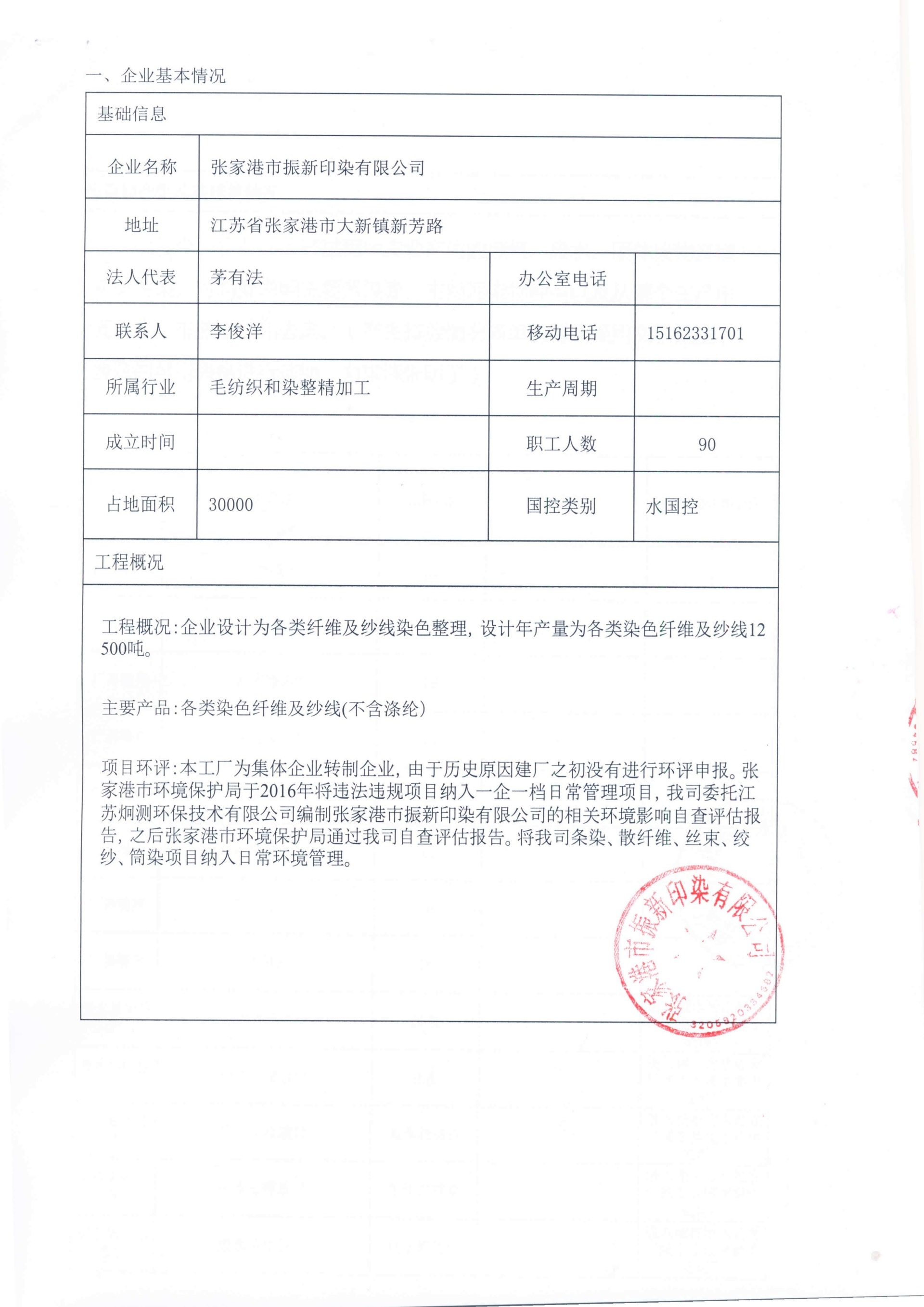 201804 of Zhenxin Printing and Dyeing Self-monitoring Scheme
